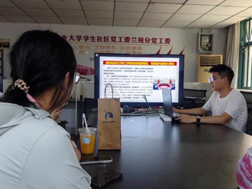 研究生会2023-2024年度第七期理论知识学习活动于梅一党工委B1051顺利开展。本次理论学习由研究生会办公室主任郝传迟同学主持,分别从习近平总书记重要讲话、共产党人精神谱系专题、时政速递和时政热评四大方面进行学习。