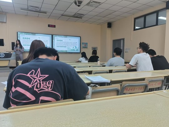 此次活动由团支书钱子璇主持。她从四个方面开展此次的团日活动。第一部分是活动背景,引导和激励青年积极参与环保活动、培养环保意识和责任感对于推动社会的绿色发展至关重要。在这种背景中,该活动应运而生,旨在通过各种形式的宣传和行动,号召广大青年积极参与到环保事业中来,以青春行动共同建设美丽中国,实现经济、社会和环境的可持续发展。第二部分是美丽中国行,向同学们介绍了环境保护,资源可持续性,全球合作的意义是坚持绿色发展,第三部分向同学们介绍了成功案例,期间还通过几个视频充分调动同学的热情。介绍了很多优秀案例。铺开详细地讲述了身为环境专业的我们应该做什么,怎么做的问题。最后,主持人对本次活动做了总结,呼吁大家继续学习、积极参加相关活动、上进进取、开拓创新。