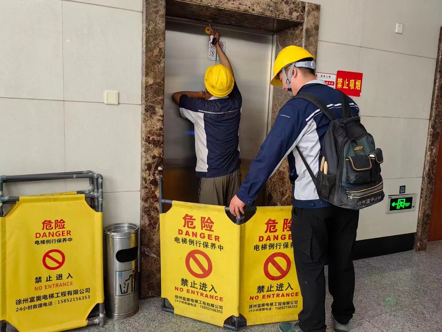 演练活动共分为模拟电梯困人故障、被困人员呼救与报告、应急救援组现场救援、后期恢复运行四个环节。技术专家组人为模拟电梯故障,导致乘客被困;被困人员通过电梯内的紧急呼叫装置求救,值班室工作人员接到求救信号后,在安抚被困人员的同时立即启动应急预案,通知电梯维保单位派专人赶赴救援;应急救援组、安全保卫组接到通知后,迅速赶赴现场,确认被困电梯轿厢位置,设置警示牌,松闸、盘车、平层,开门放人;成功解救被困人员后,排查故障,恢复电梯运行。救援过程科学合理,节奏紧凑,有条不紊,成功救出被困乘客。