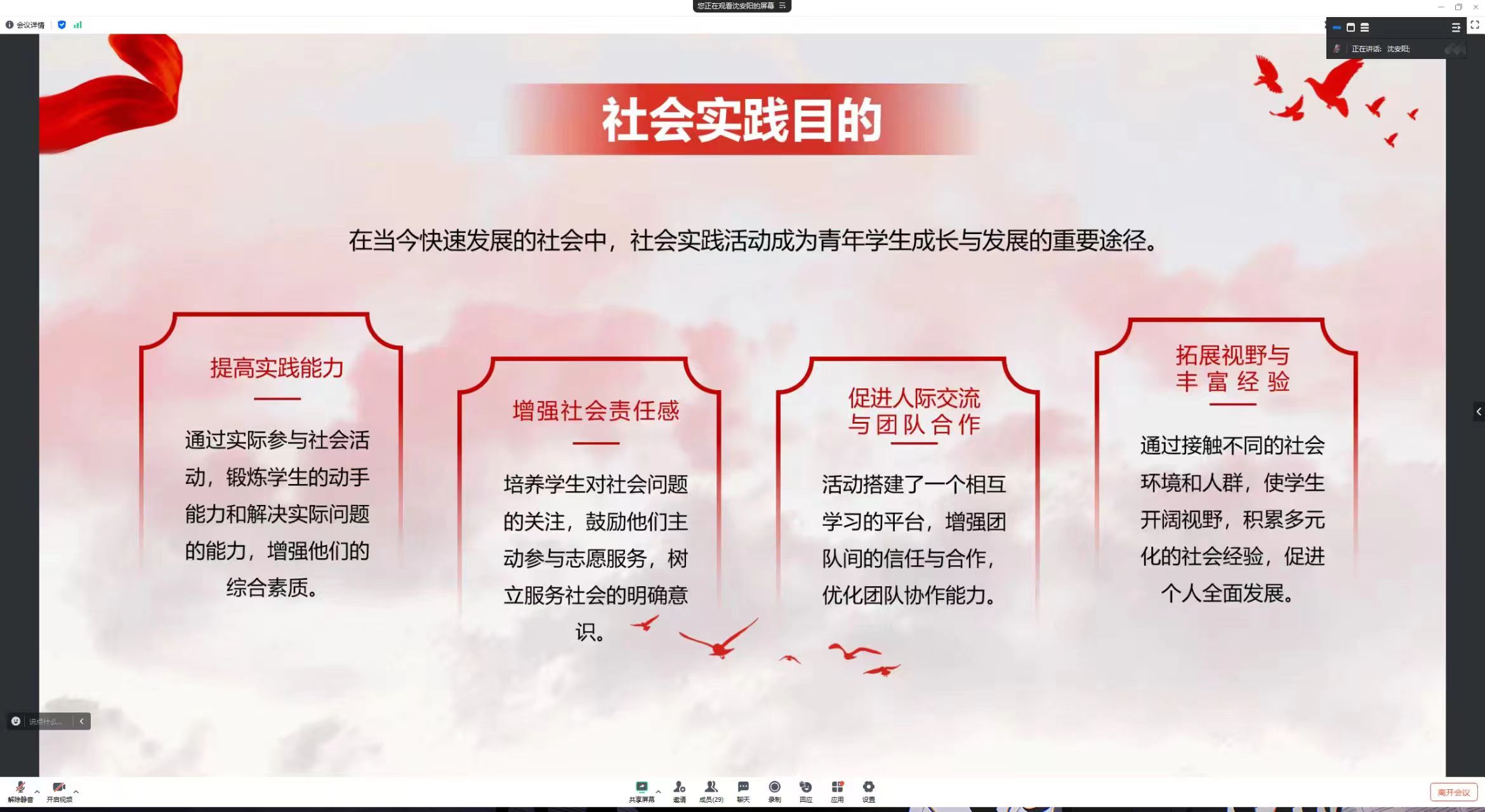 遥感科学与技术2022-02班团支部积极响应号召,组织班级同学于线上腾讯会议开展“暑期归来话实践”主题团日活动。本次团日活动旨在让同学们深入了解社会实践,提高同学们的社会责任感。