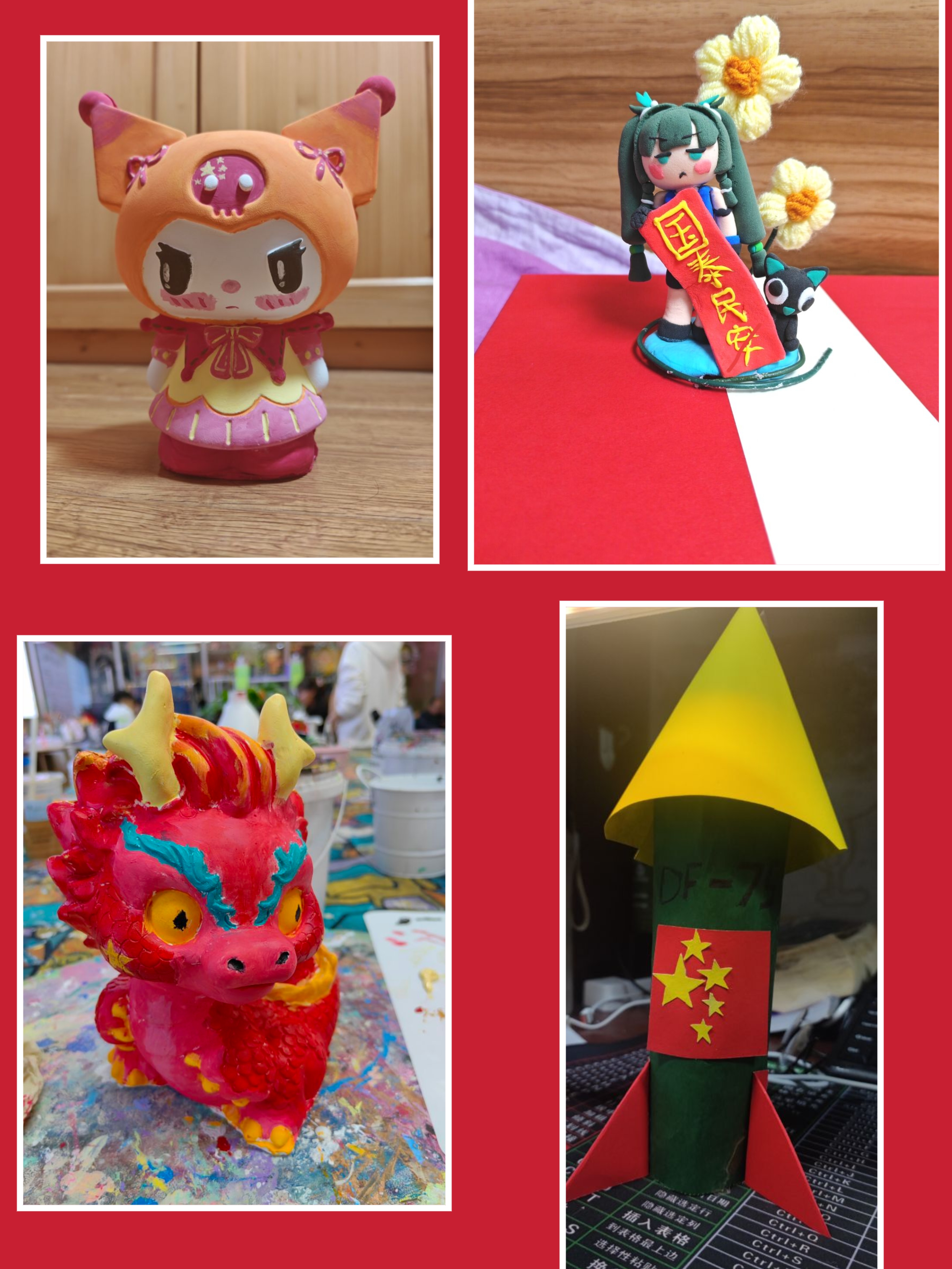 活动期间,同学们脑洞大开,用双手制作出一件又一件饱含爱国情怀的DIY作品,增强同学们的成就感,激扬你我的爱国情。活动结束后,相关人员对所有参与者的作品进行评分,并进行获奖等级的公示。