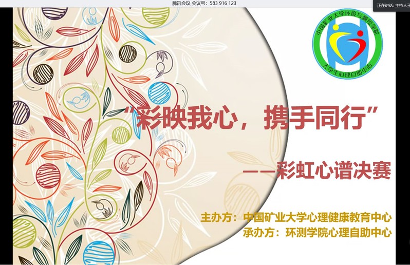 为丰富我校大学生的课外活动,调节我校大学生疫情期间的心理,4月26日由我院大学生心理自助中心举办的“彩映我心,携手同行”彩虹心谱决赛在腾讯会议线上举行。校健康教育中心的张金健老师、肉漫画
