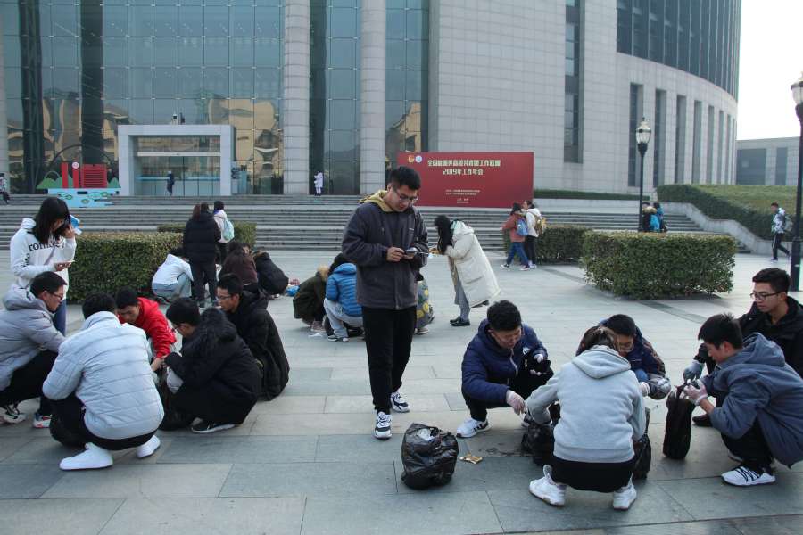 青年志愿者协会环保部于图书馆门前举办“拾荒跑团”活动。