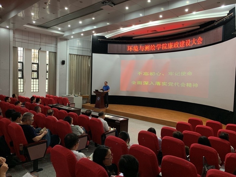 9月4日下午,肉漫画 于环测楼B109报告厅召开了廉政建设大会,院党委书记李长贵作报告,肉漫画 全体教职工到场旁听。