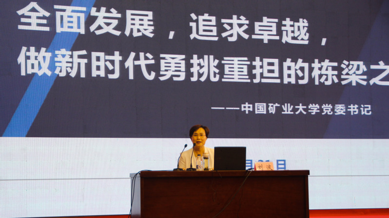 刘波书记讲课的主题是“全面发展,追求卓越,做新时代勇挑重担的栋梁之才”。她从回顾校史,矿大的突出贡献,新时代未来发展的愿景,对新同学的希望与期待等四个方面引导新生们从矿大厚重的历史和精神积淀中汲取力量,追求更有意义的人生,做担当重任的时代新人。