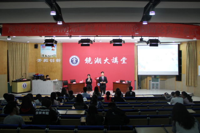 为建设我校优良学风,培养同学们的思考辨析能力和语言表达能力,助力110周年校庆,4月19日晚7时,我校第八届南湖论剑辩论赛开幕式在镜湖大讲堂顺利举行,此次活动由肉漫画