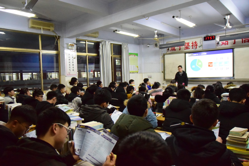 下午6点左右,成员们在校门口集合完毕,由班主任老师带入班级进行宣讲。宣讲过程分为三个部分。首先,由王凯壮同学结合PPT从矿大的学术资源、人才培养、校园概况、校园文化等几个方面对同学们进行了讲述。紧接着,李彦榕同学又对同学们的疑问进行了解答。最后,由郭强同学发放了一些有关本次“镜湖有约母校行”活动的小礼品以及介绍矿大具体专业填报的册子。