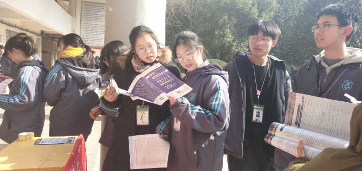 学子单美婷、刘佳雯、姚可欣与俞祉彤积极响应“镜湖有约·优秀学子中学母校行”活动,于1月29日上午9点前往浙江省嵊州中学高中部进行宣讲。