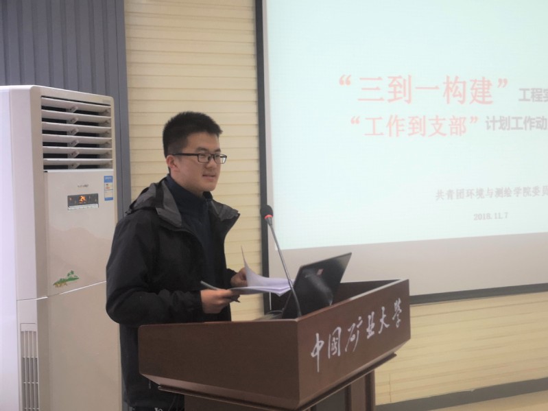 随后,学院党委副书记王守刚讲话。他首先为同学们介绍了“三到一构建”的背景,并详细解读了其内容。王守刚副书记指出,实施“三到一构建”可以提高共青团的凝聚力和吸引力,加强共青团思想政治引领工作,传播正能量,激发团员青年的文化创造活力。他从自身体会出发,点明了党对高校共青团的要求,并表示,高校共青团的原则与目标即“为每一位大学生服务”。王守刚副书记强调,每一个学生都是共青团的服务对象,要帮助学生养成良好的学习习惯、营造积极的学习氛围。他表示,希望各团支书针对问题展开工作,以学生学习为核心进行活动。在大会最后,于海霞老师进行了“三到一构建”与团日活动的具体事宜安排。