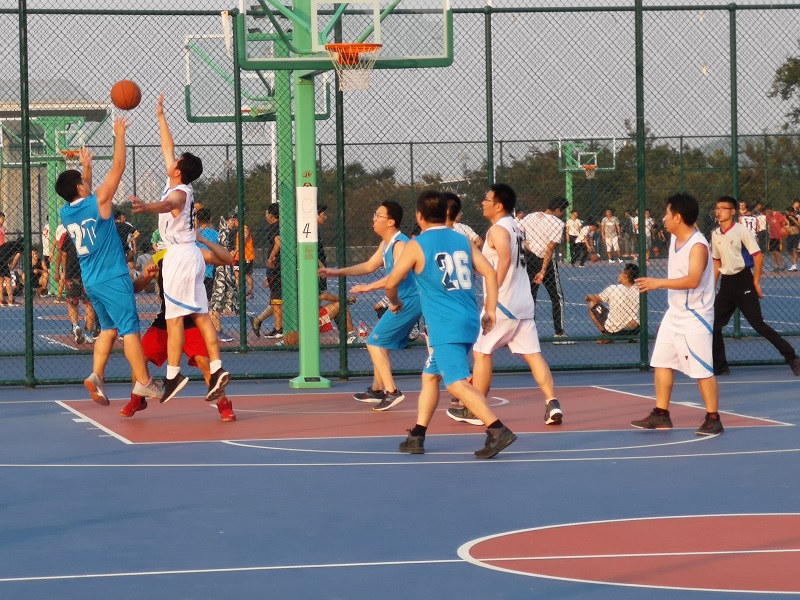 教职工篮球队员提前在比赛场地进行热身,进入比赛状态。比赛中,郝明、李怀展、陈国良、丁毅、闫志刚等老师团结合作,多次突破进球,一开始便领先对方六分。但是机电学院的教职工实力强盛,一步步反超,甚至领先,最大时相差十分。下半场,郝明老师以他精湛、娴熟的运球和上篮以及李怀展、陈国良等老师的团结协作最终将比分扳回到只差一分,比赛进入赛点。最后一回合对面后场球,环测全场紧逼,双方都展现出精彩的表现,你来我往,互不相让。就在肉漫画