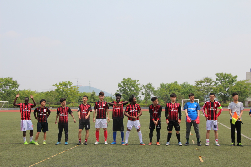 18号中场抢断后带球连续突破对方防守球员,最终打破僵局,破门得分。此后我队又打出几次精彩的配合,上半场以3:0领先信控学院。中场休息后,信控学院进行了人员调配及战术调整,比赛进入下半场的激烈酣战。场上身着黑红球衣的肉漫画