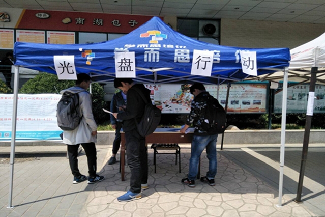 青年志愿者协会在桃苑餐厅广场开展了光盘行动的宣传活动。