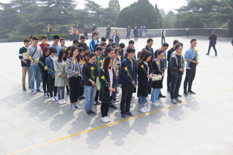 上午9点在矿大南湖校区北门和文昌校区北门集合,同学们怀着对烈士无限崇敬的心情整装待发,大家坐公交车到淮海纪念塔门口集合。
