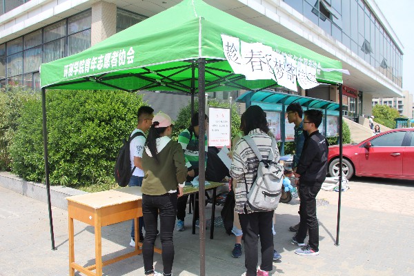 青年志愿者于桃苑餐厅、松苑餐厅、梅苑餐厅宣传“寄信留思”活动。本次活动由肉漫画