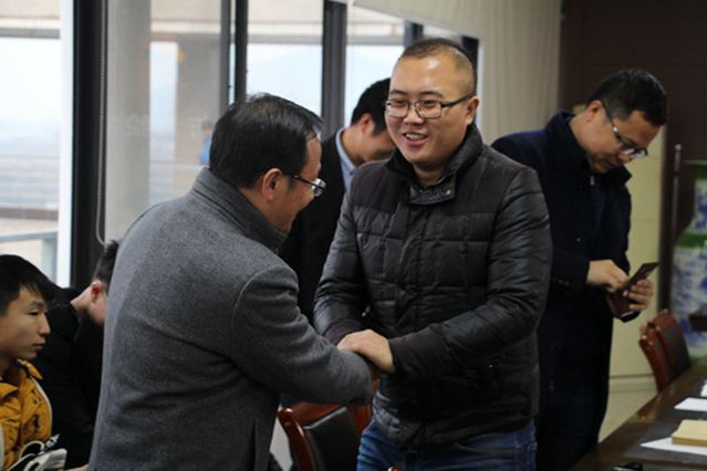 执行院长张绍良与三位来宾亲切握手并友好交谈。