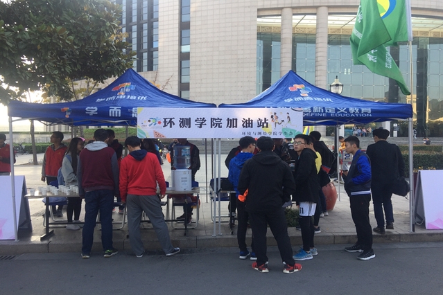 辅导员陆雨和同学们积极报名参赛。在李月老师的带领下,同学们一起布置了运动员加油服务站,他们为马拉松运动员们准备了热水、纸巾和水果等多项运动员跑步过程中的必需品。