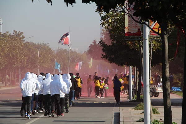 本次 “彩虹”乐跑,在赛程中途还有几个站点,选手们每到一个站点就会接受一次彩粉的洗礼。活动开始之前,各院班级参赛选手换上各自的队服,并统一进行准备活动热身,做好比赛准备。