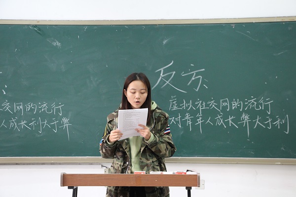 17级辅导员李月和16级兼职辅导员杨琪琪以及往届的优秀辩手担任评委。环境三班与环境五班辩论队赛以“社交网络对青少年的身心健康的利弊”为辩题争夺冠军。