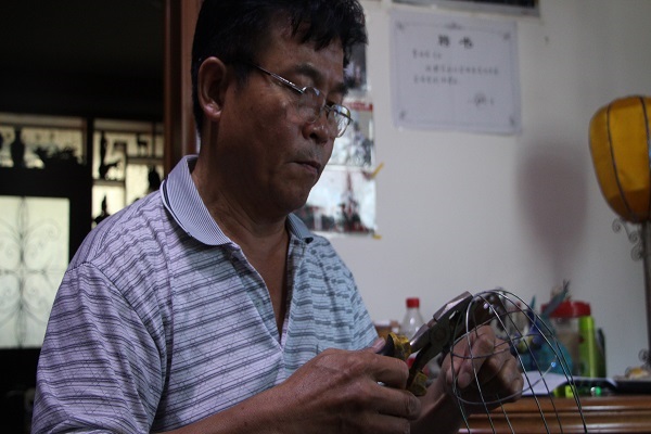徐州非遗纪录片拍摄团队在曹老师的家中进行了为期八天的拍摄。参观了曹老师制作金鱼花灯的全过程,并采访了曹老师和其爱人一些生活和工作上的问题。 作为徐州花灯的首席继承人,曹开君老师秉承着"精益求精"的精神,对每一个自己亲手制作的花灯,都尽心尽力,力求做到最好。不仅仅将徐州花灯制造手艺保存并流传了下来,还在此基础上对于"花灯焊造"、"花灯设计"进行了创新。我们在现场观摩了曹老师制作一盏鲤鱼花灯的全过程:几根细细长长的铁丝,几块普普通通的绸布,在曹老师和其爱人的共同努力下,眨眼间便变成了一条活灵活现的美丽金鱼。从“立意”到“制作骨架”,再到“布灯”,最后的“撒金粉”,曹老师显得游刃有余,一边对我们悉心讲解其中重点,一边操作着工具。在制作过程中,曹老师多次被焊具烫伤,并表示这是家常便饭。但这点挫折并不会阻挡曹老师在艺术传承的这条路上继续前行,正如戴维所说:“挫折是倾覆弱者生活之舟的波涛,是锤炼强者钢铁意志的熔炉。”使我们备受感动,深受感染的不仅仅是因为老师的高超技艺,还有老师的状态,沉稳亲善,从容饱满,满满的生机,对花灯充满深厚的情感与热爱。 曹开君老师这样说到:"在徐州,花灯一般是小孩子们在过元宵节的时候玩的。每一个花灯的质量是否良好,外观是否美观,都决定了一个孩子能否过一个快乐的元宵节,所以说每一次制造花灯,我都尽我所能做到最好。"也许正是曹老师十几年如一日的对于花灯的坚持,使得曹老师的花灯与其他人相比,显得与众不同。 制作完金鱼花灯后,我们采访了曹老师及其爱人一些关于生活与工作上的问题。曹老师坦言,他和他的爱人常常在制作花灯时会有意见上的不统一,但也正是这种思维上的碰撞,意见的折中,才让他制作的花灯越来越精美。 在采访过程中,曹老师多次提及现今花灯发展步履维艰。多日劳动的成果在展览上被人损坏的事情不止一次发生,这类情况让他非常痛心,但他依旧对花灯的未来充满期待,“我一直在对我的花灯进行改造,让它更符合现代趋势。我希望它能一直发展下去。” 在灯火阑珊处,曹老师怀揣着美梦,独倚明月高楼,望断天涯路。他说热爱的东西他放不下,老祖宗留下来的东西,他不能丢。他时时刻刻的渴望着让自己的灵感,智慧,技艺凝结成一件件能流传永世的作品,将自己存在过的蛛丝马迹坚强不屈的留在作品之中。以这样的方式,即使肉体死去,他们的生命依旧会在作品之中生生不息的绵延。这样的信念体现在曹老师身上,化为了轻轻地一句:为这个世界留点儿什么。 “灯烧陆海,人踏春阳”。曾经还是个孩子的曹老师就曾流连于美丽的花灯之间忘却归家,年年岁岁灯相似,岁岁年年人不同。春秋几度,看花灯的人最后变成了做花灯的人。几十年默默无闻的坚守,忍受着艰苦与寂寞,忍受着轻视与不公,从来没有想过放弃。这个心灵手巧的匠人,不愿放弃的犟人,最初不过是一个喜欢了就一直做下去的普通人。 通讯员:张志恒