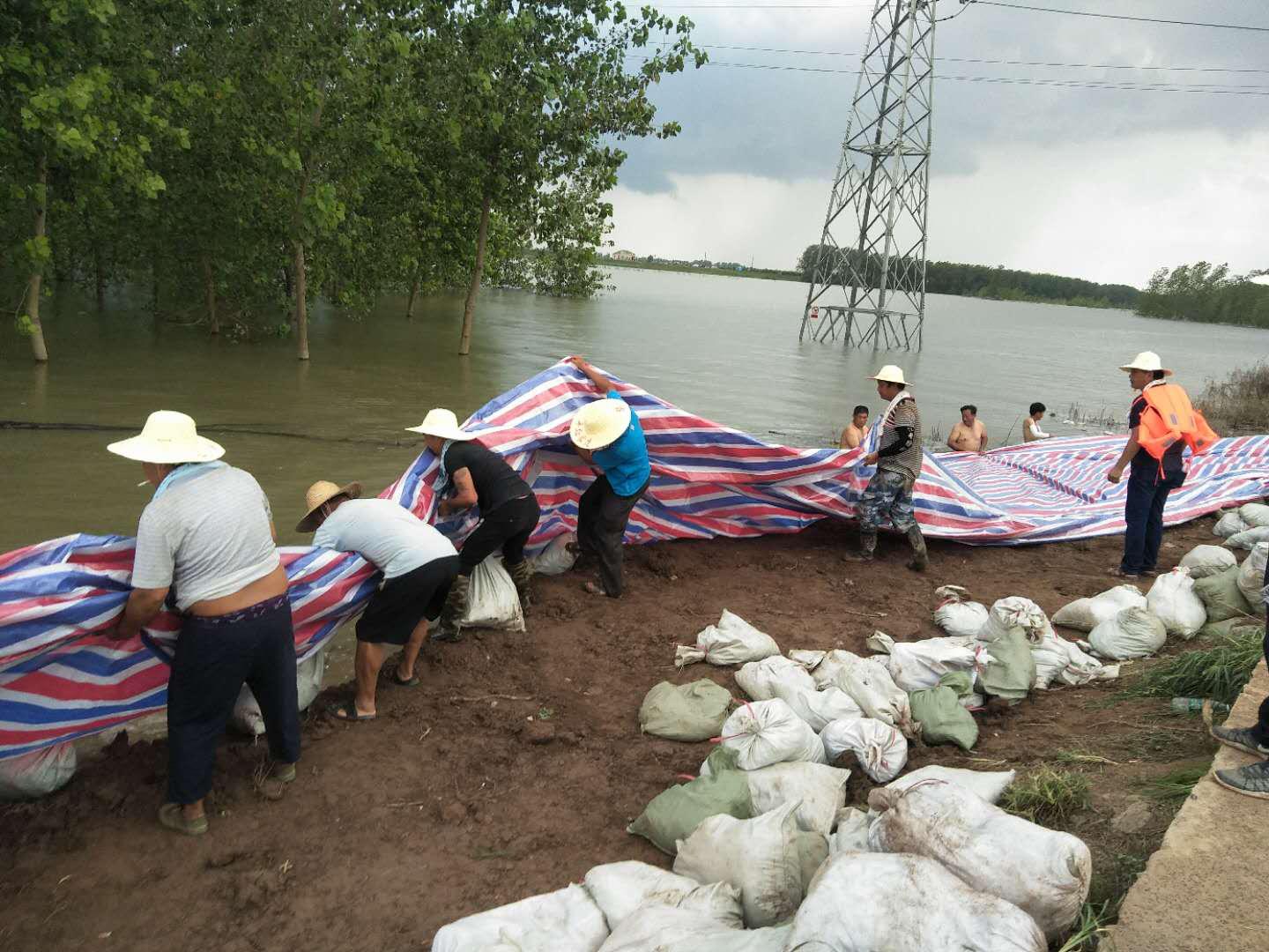 吴定一与防汛人员用砂石埋堵水位过高地段