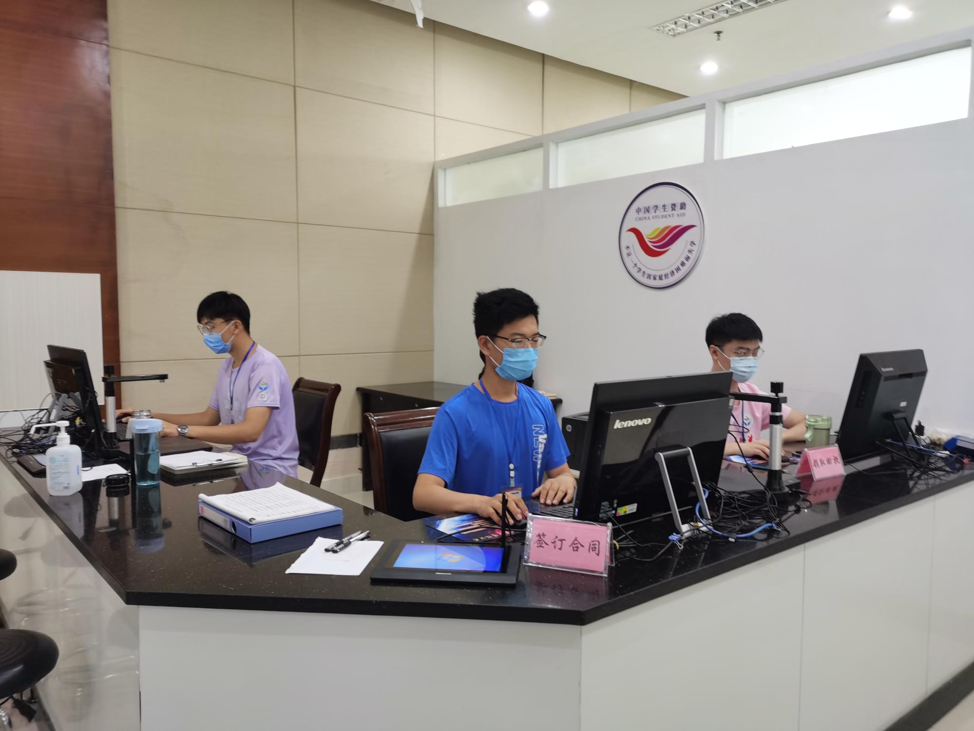 为了响应疫情防控,今年在现场办理生源地贷款业务的学生,首先需要佩戴口罩,接受体温测量,出示健康码。然后由实践人员进行助学贷款政策测试,通过测试后向实践人员提交证件材料,采集信息,签订合同。最后领取贷款合同及受理证明。随后,武成龙同学检查办理业务需要的相应材料是否充分。对于因升学需要信息变更的学生,是否输错院系、专业名称。武成龙表示,现场工作时,扫描证件、引导签字、打印材料都需要耐心一步步完成,十分能锻炼个人的细心与耐心。