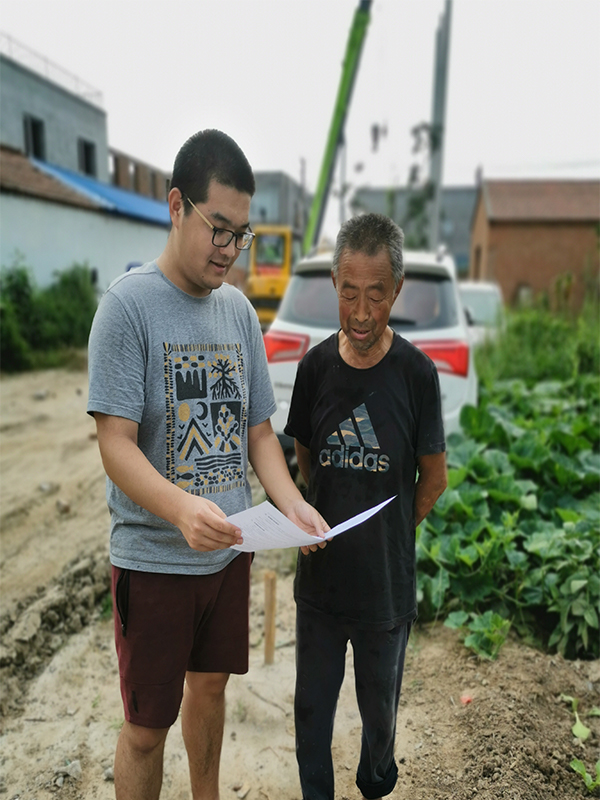 学子杨宇凡于8月28日至8月30日在北京市通州区西田阳村走访各家各户,开展了为期三天的垃圾分类宣传教育工作。
