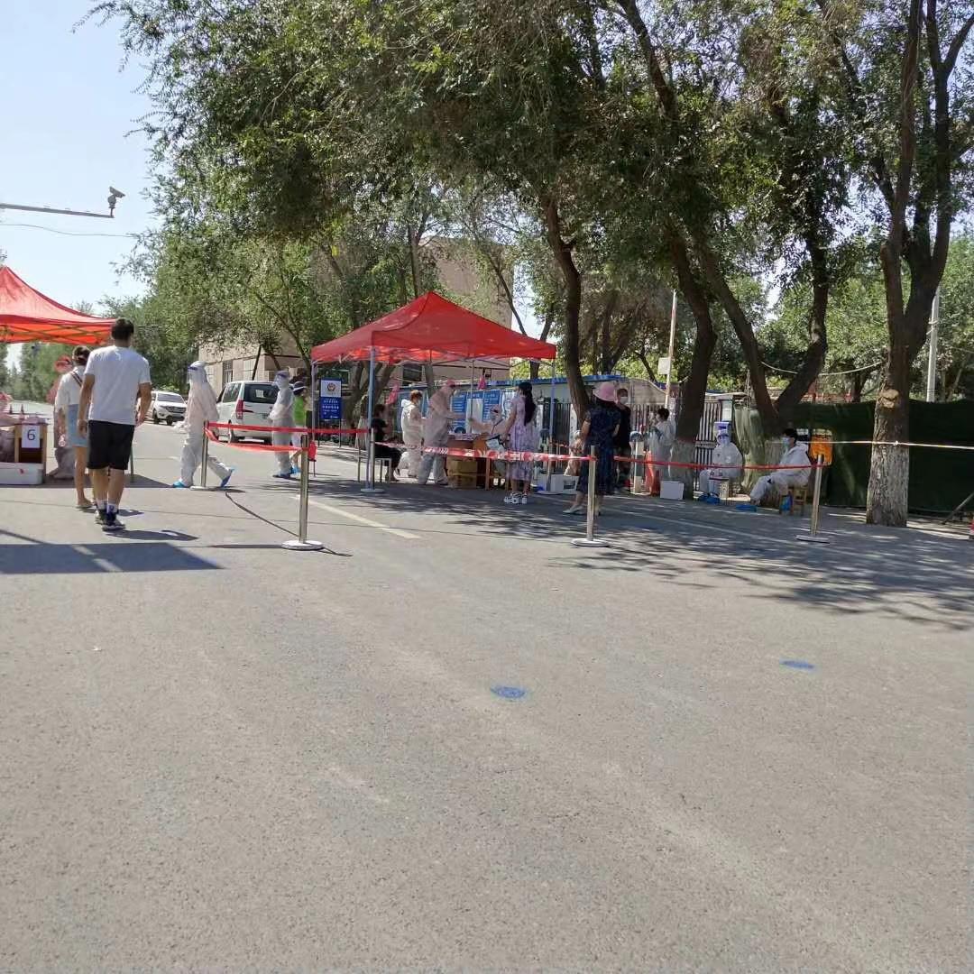 实践期间,实践人员和返乡大学生志愿者们一起帮助新疆乌鲁木齐新市区安宁渠河西村委员会举行了为期三天的核酸检测工作,号召全体居民分时段分批数的前往指定地点进行配合医务人员的检测工作。
