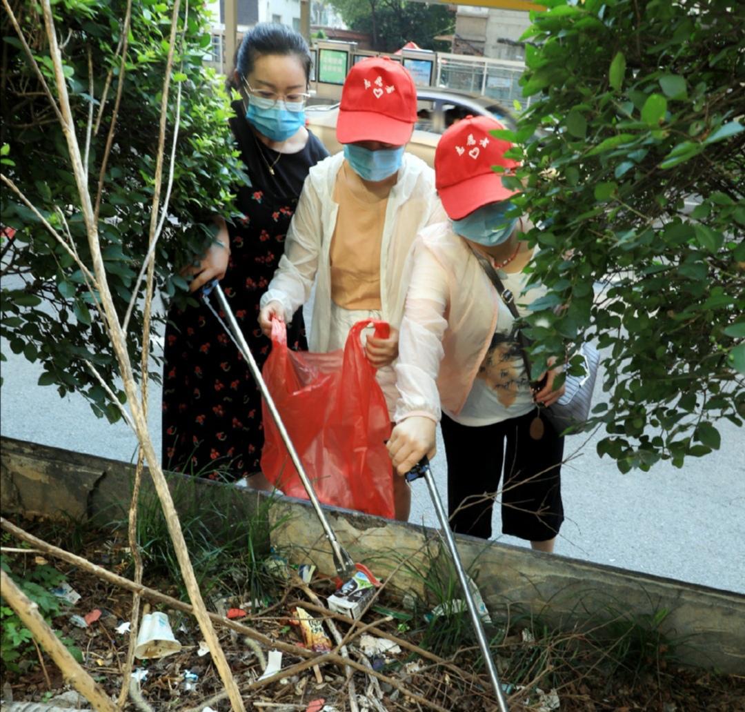 学子谭青青同社区志愿者在恒信•中央公园社区参与了垃圾捡拾的公益活动。