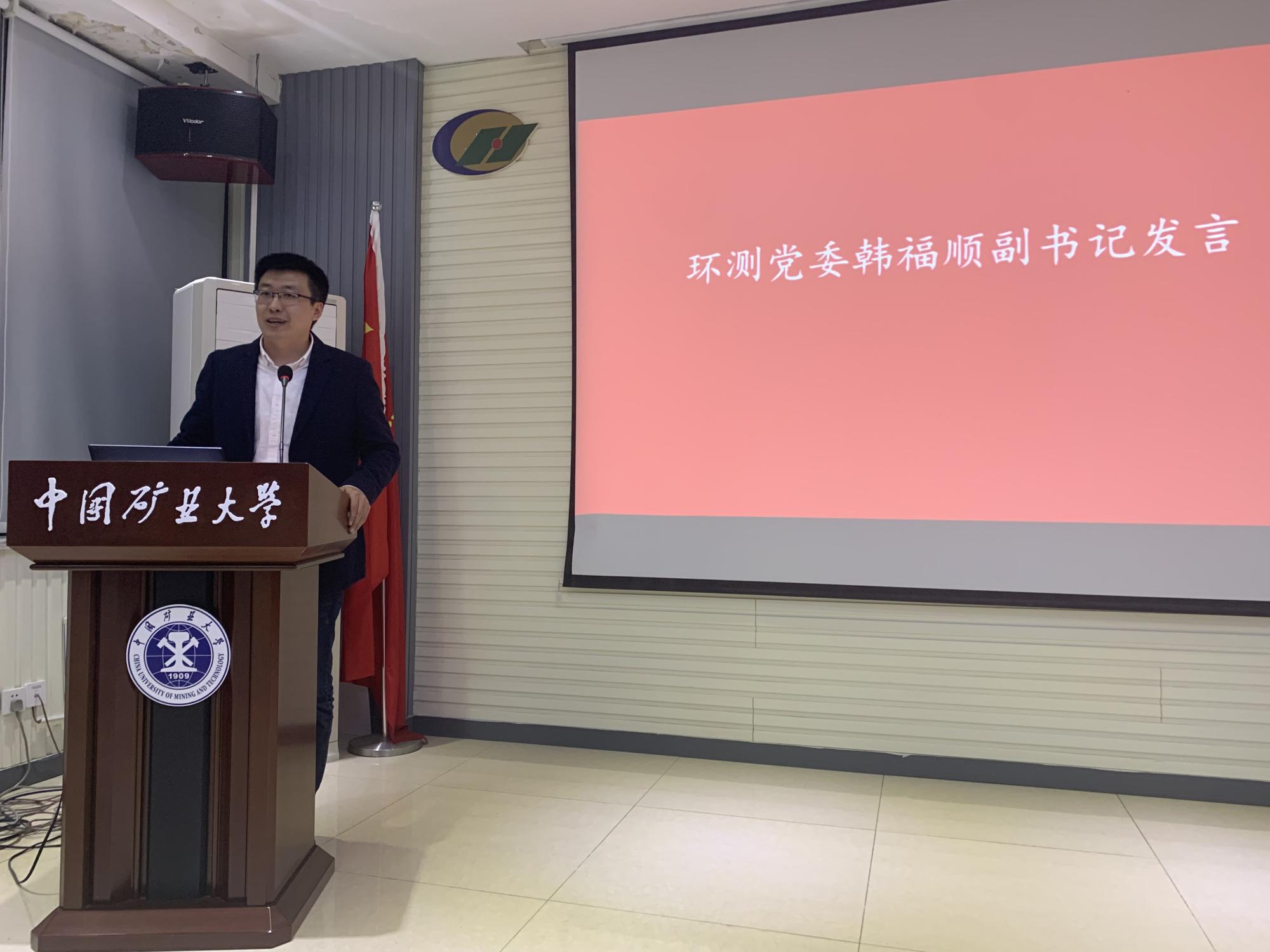 活动的最后,环测党委副书记韩福顺做总结发言,韩书记对都各位党员同志在抗疫中的表现给予肯定,并向全体参会同学提出寄语,他说青年一代是国家未来的希望,他鼓励大家继续向先进榜样们学习,不怕吃苦、敢于奉献、勇于牺牲,展示出矿大学子的风采。