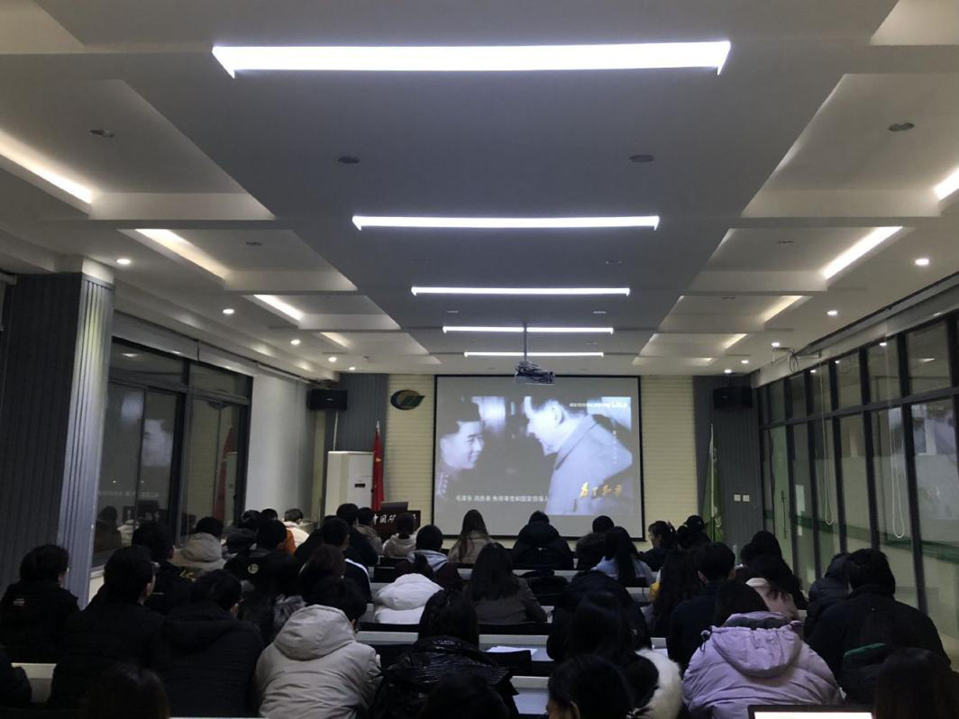 为深入贯彻落实习近平总书记在纪念中国人民志愿军抗美援朝出国作战 70 周年大会上的重要讲话精神,深入开展“四史”学习教育,大力弘扬伟大的抗美援朝精神,加强新时代爱国主义教育,教育引导广大师生厚植爱国主义情怀,教育部办公厅要求组织全体教师观看大型电视纪录片《为了和平》,并发出专门通知。为响应通知精神,全体参会人员共同观看《为了和平》系列视频中的第六集《伟大的胜利》,过程中大家聚精会神,观看结束后在主持人的引导下同学们踊跃分享个人感受,认识到继承和发扬革命先辈的光荣传统的重要性。会后党支部建议参会积极分子、发展对象、及党员同志们自行观看其余五集,并提交观后感悟。