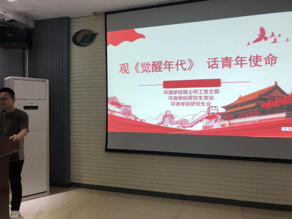 活动伊始,由硕士环工党支部组织委员郭家旺同志通过演示文稿向与会人员分享了《觉醒年代》电视剧中的若干精彩片段,并围绕以下几个问题进行剖析:青年是如何成为时代先锋的?中国该往何处去?马克思主义的传播与中国共产党的建立,为何是历史的必然?