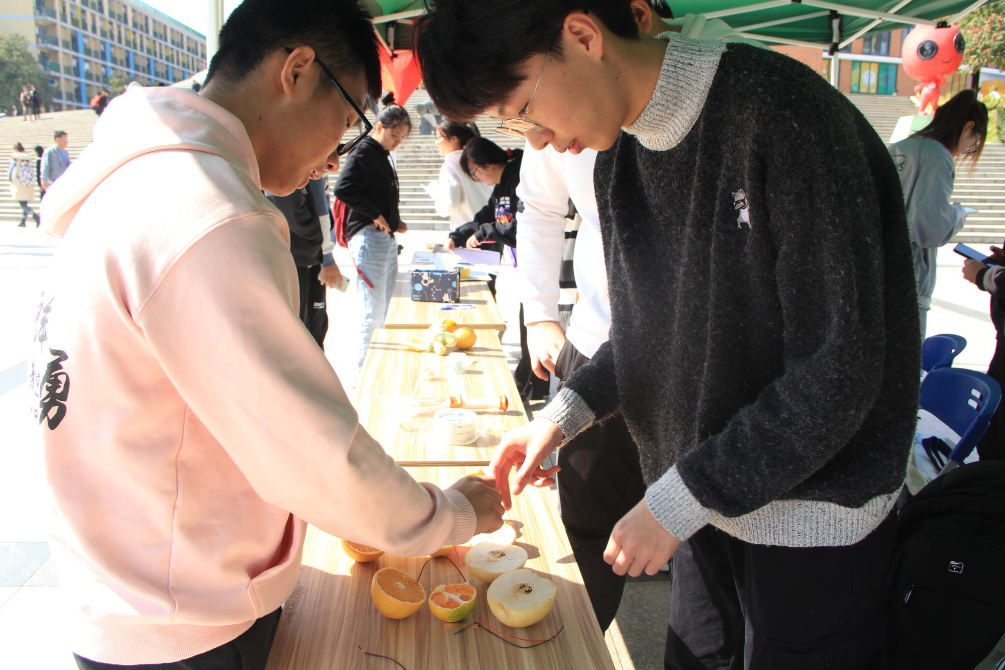 上午11时,总务部和物业相关管理人员为此次活动致开幕辞,并宣布活动正式开始。此次节约用电活动包括节约用电知识问答、水果电池发电、签写节电标语、随机采访和套圈五个部分。活动中,精美的纪念品和有趣的套圈游戏吸引了不少同学参加活动,同学们在套中摆放好的盲盒之后,还需要回答出盲盒所含故事中的节约用电小故事,回答正确即可获得小奖品。同时,大家对水果电池发电原理也产生了浓厚兴趣,纷纷上前尝试用水果发电点亮小灯泡,了解到了新颖的发电方式。活动最后,同学们在彩绘板上书写了自己的节电标语,并积极向大家分享自己的节电妙招。