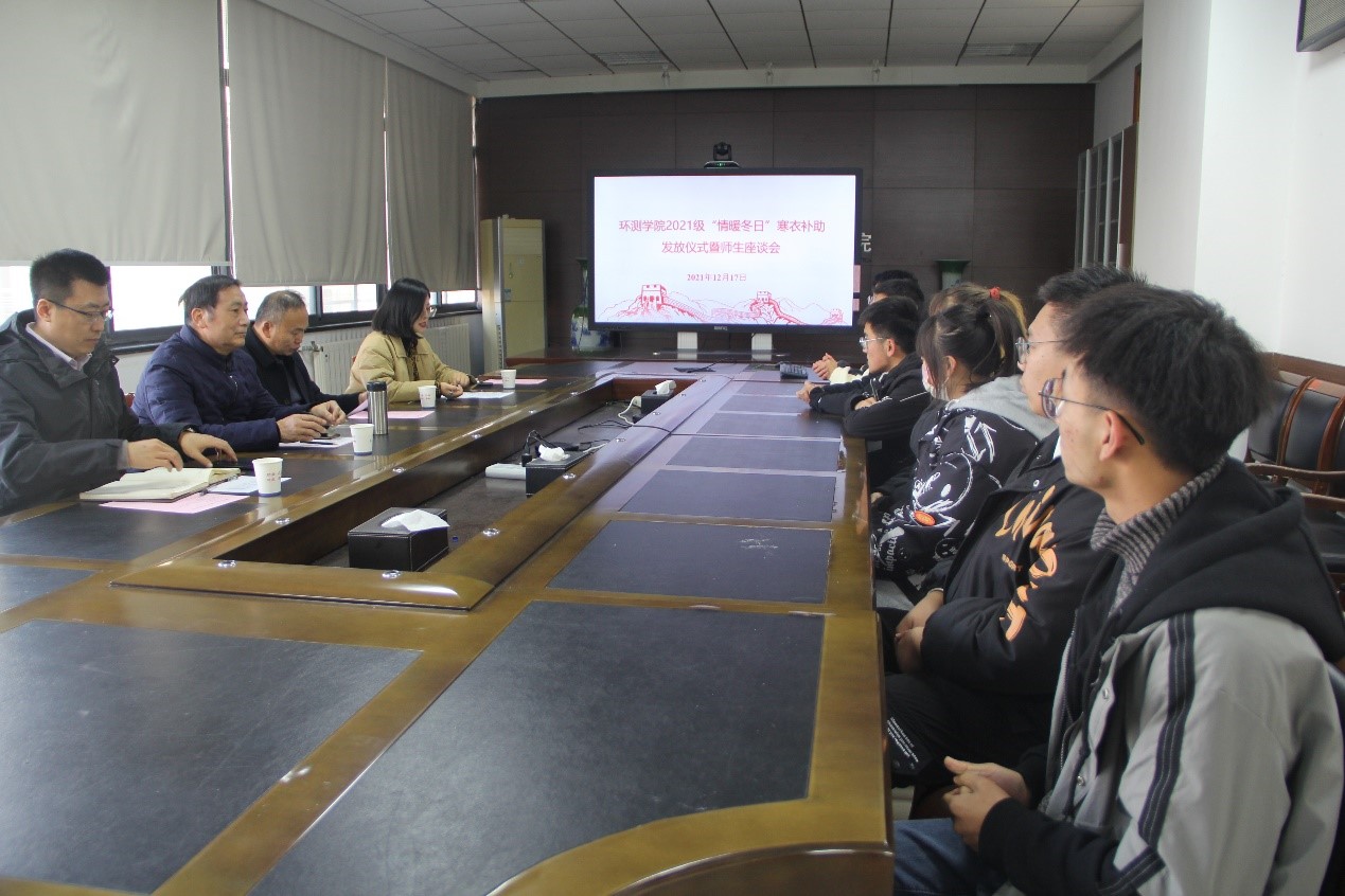 在学院楼A506举行“情暖冬日”寒衣补助发放活动暨师生座谈会。学院行政副院长郭东、党委副书记韩福顺、关工委常务副主任邱慎耕及21级7名学生参加了此次活动。本次活动由21级辅导员于海霞老师主持。