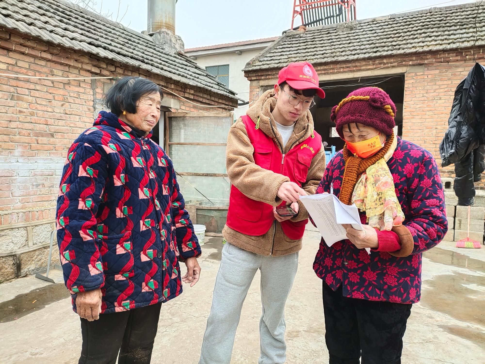 1月24日上午,朱凯同学抵达丁木集村党员工作站进行房屋普查培训,主要工作内容是调查房屋产权人姓名、房屋的结构、面积、建造年代以及是否进行了安全鉴定,同时还需要拍摄包含地理位置和时间的房屋正侧两面以及辅助用房的照片,便于进行统计。下午,志愿者们为七组,每组由一位村里的老人和一位大学生志愿者组成。随后进行每家每户的走访,调查过程中朱凯同学与户主进行了详细的商讨,核实计算的房屋面积,最后进行拍照上传。