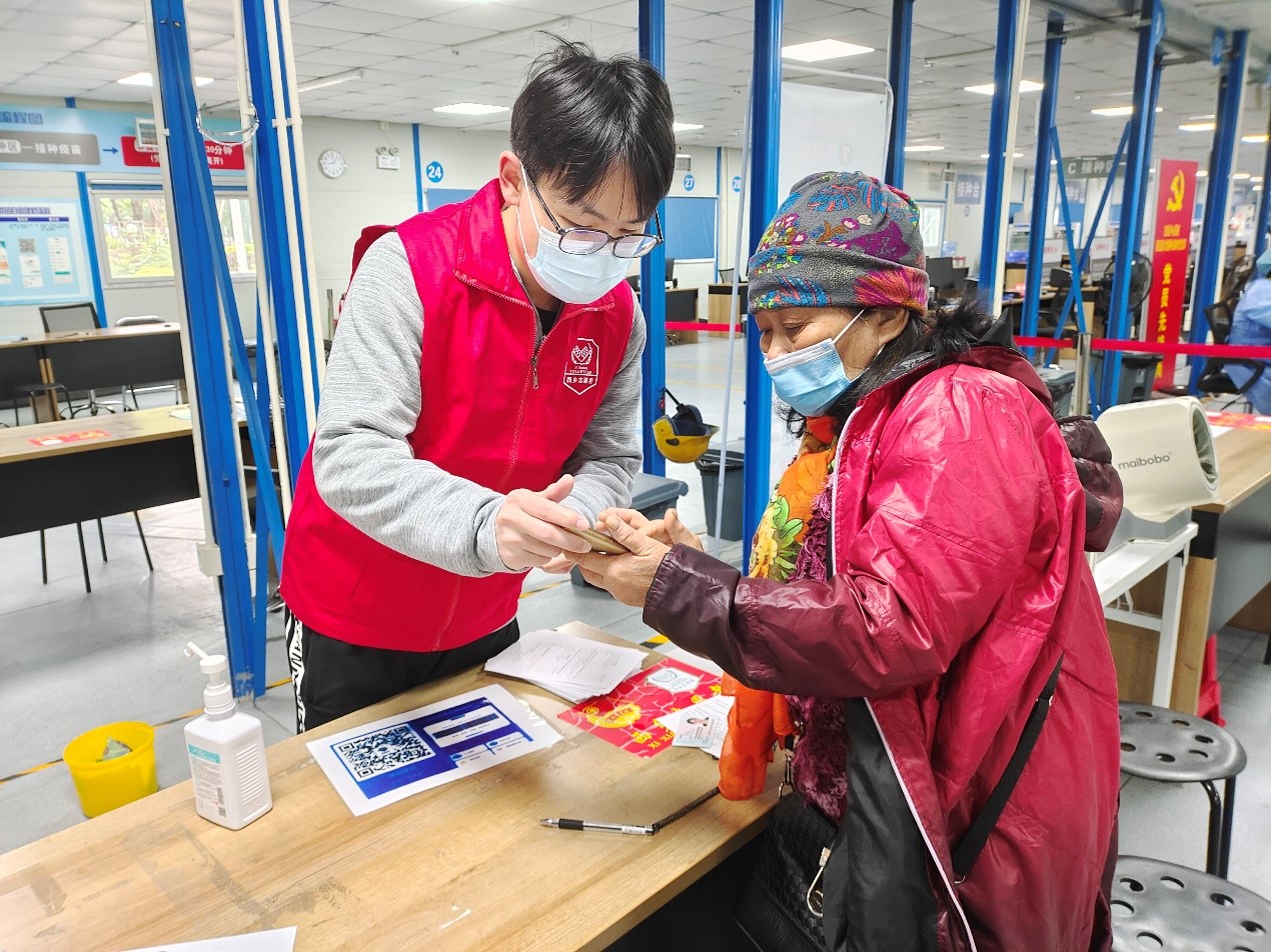 活动当天,罗鑫与其他十多名志愿者按时抵达了西乡体育中心,在负责人的分配下前往不同岗位,罗鑫被安排前往疫苗接种点。经过培训后,罗鑫同学开始帮助前来接种新冠疫苗的居民填写资料、引导道路、维持秩序等工作。罗鑫表示,来接种的人群中有很大部分是中老年人,对手机填写资料等手续操作不熟练,需要耐心演示并指导操作,虽然整个过程繁琐,但是在帮助他人后内心产生的满足感是不可替代的。