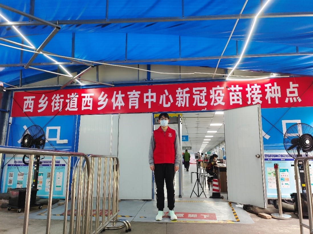 学子罗鑫积极响应国家号召,于西乡体育中心参加了疫情防控志愿活动。