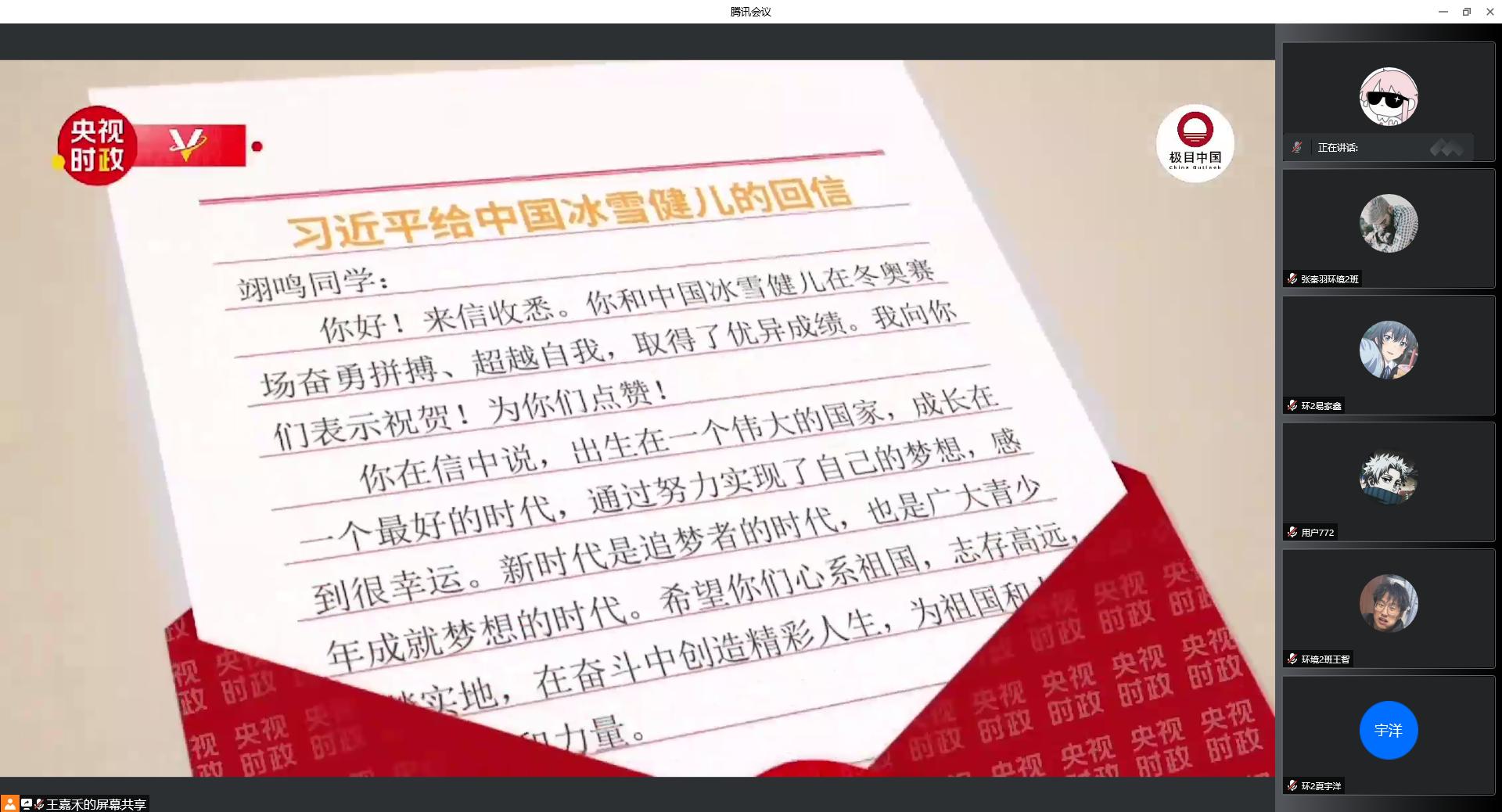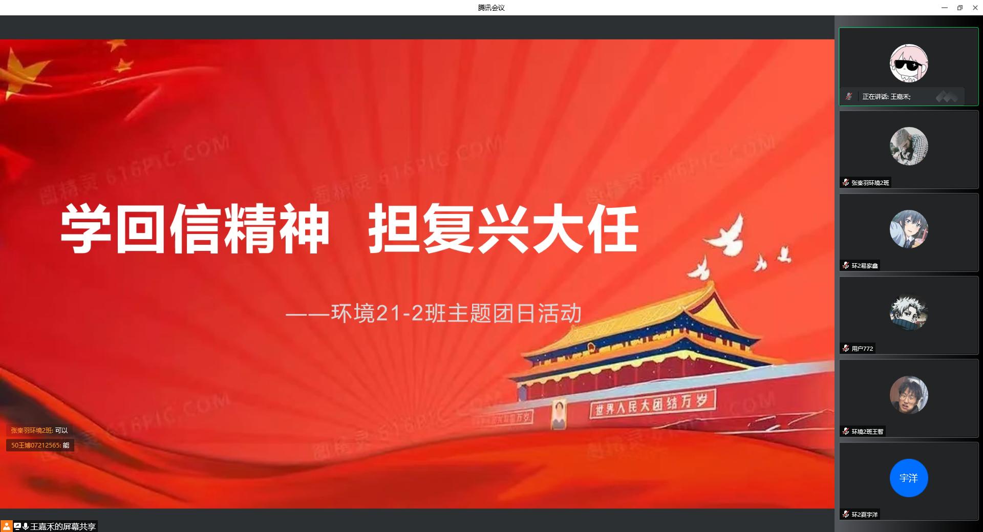 环境21-2班在线上开展了主题为“学习贯彻习近平总书记给中国冰雪健儿重要回信精神”的团日活动。