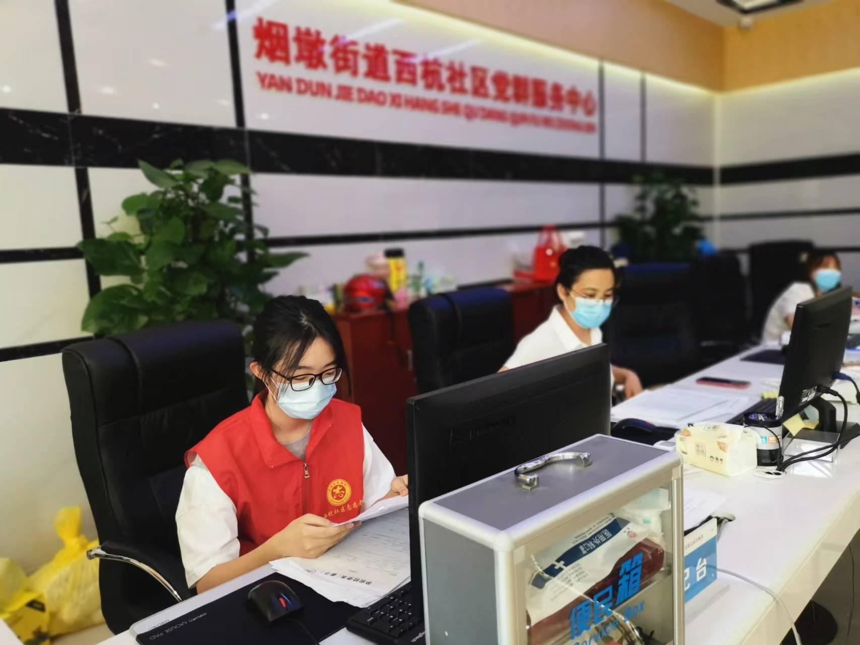 8月8日上午,刘小禾同学前往烟墩街道社区居民委员会报到,进行志愿者服务培训。期间,社区工作人员向刘小禾同学详细讲解了志愿者的工作内容:接待引导来访居民前往相应地点办事,登记返乡报备人员身份信息等。工作期间,刘小禾同学认真负责,耐心聆听来访者的需求,得到居民和社区工作人员的一致好评。登记信息的工作较为重复枯燥,但刘小禾同学并没有因无聊而松懈,她认真负责,做好了自己的本职工作。在认真工作的同时,刘小禾同学感受到自己真正参与到了社会工作中去,在社区服务中找到了自己的位置。