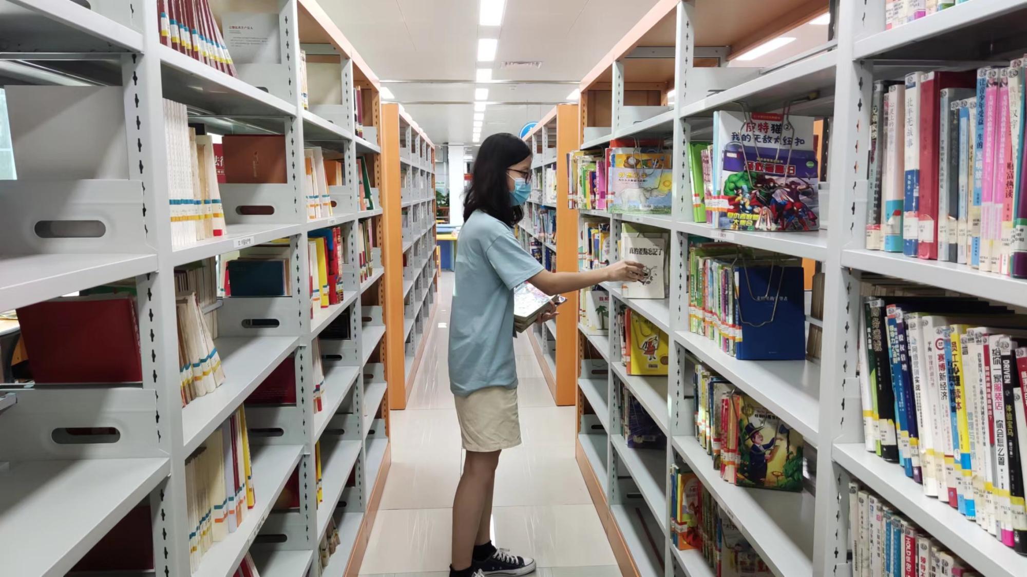 学子韦娜在广东省佛山市顺德区容桂图书馆参加志愿服务活动。