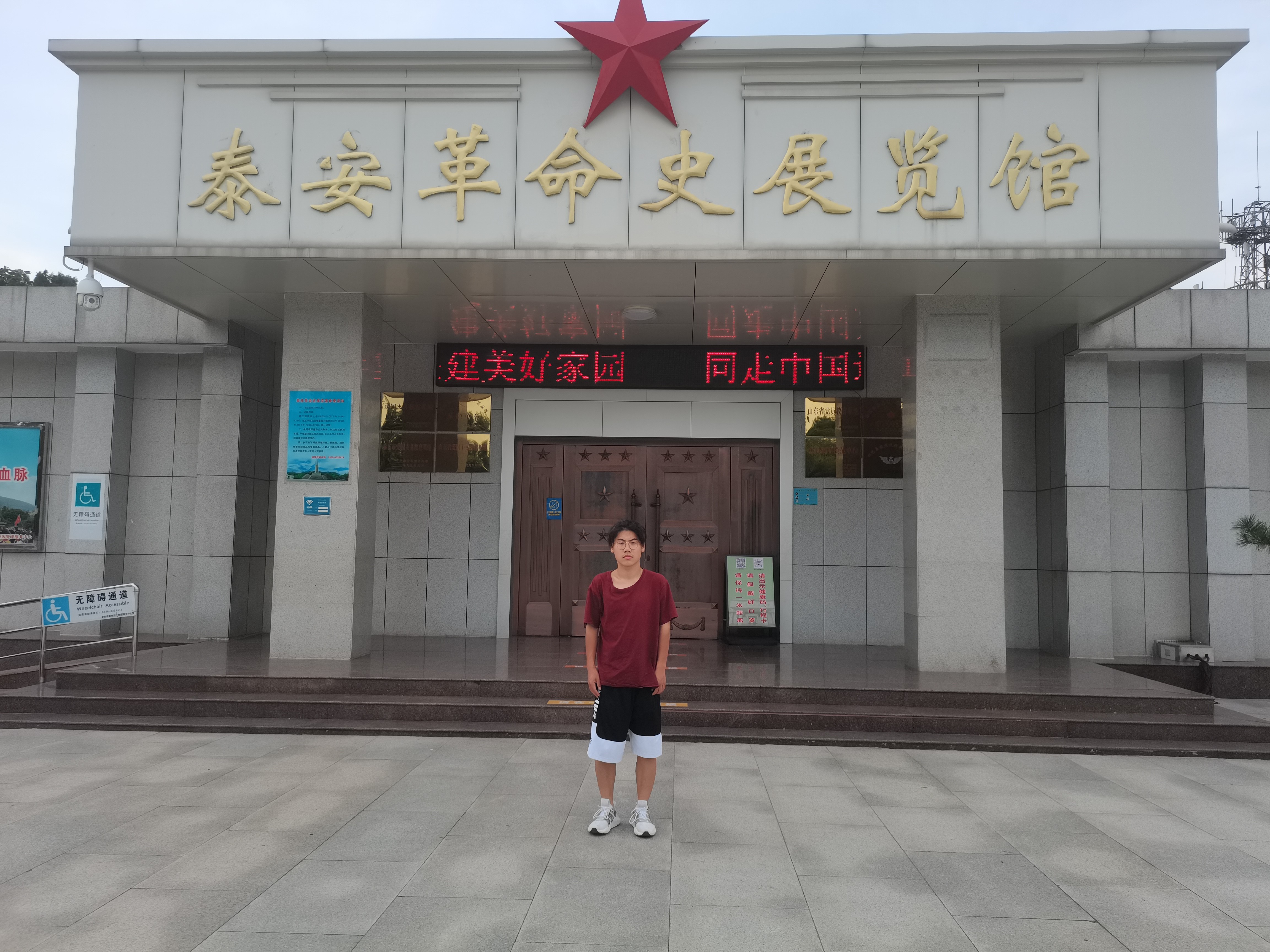 首先,巩人杰同学来到烈士林园中的革命烈士纪念碑前,追忆革命先辈,感悟红色意志。抗日战争历时十四年,在这十四年间,中华儿女同侵略者进行了无数场的战役,每一次战役都是殊死搏斗,每一次战役都会有人流血、牺牲。但是牺牲并没有磨灭他们的斗志,在经历了十四年的浴血奋战、十四年的山河不屈,最终在七十七年前的今天,换来了侵略者无条件投降。为中华民族的百年屈辱史画上了句号。在烈士林园里,不仅安葬着为抗日战争奋斗的英雄烈士,还安葬着为了建立新中国、为了建立社会主义社会国家而鞠躬尽瘁死而后已的革命烈士。正是他们,建立了中国共产党,带领着人民,成立了新中国。如今中国的国力飞速的发展,离不开这些革命烈士所做出的努力。在园区缅怀先烈后,巩人杰同学来到泰安革命史展览馆,在这里,他重温了泰安的革命历史,传承了先辈们的革命精神。