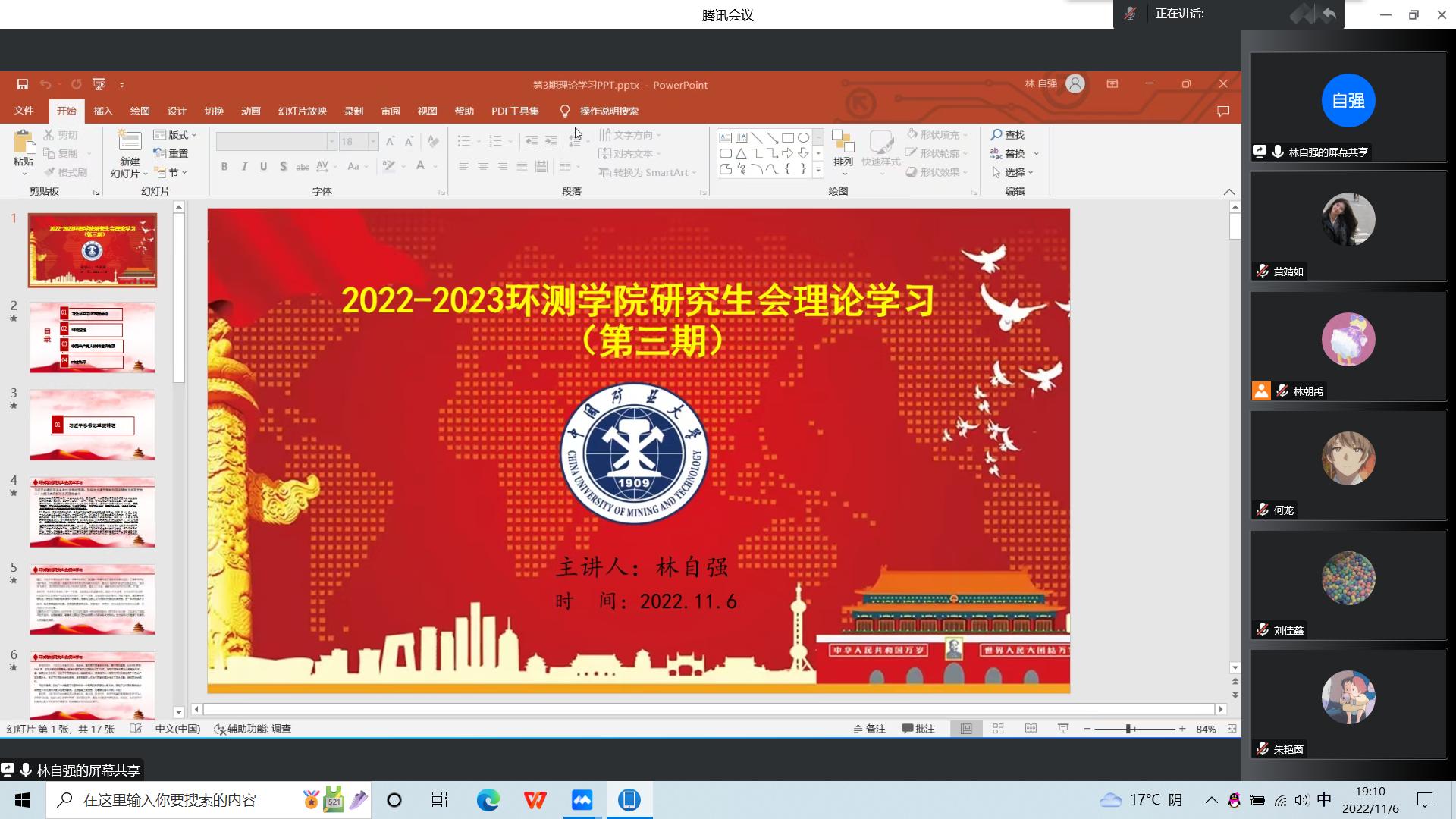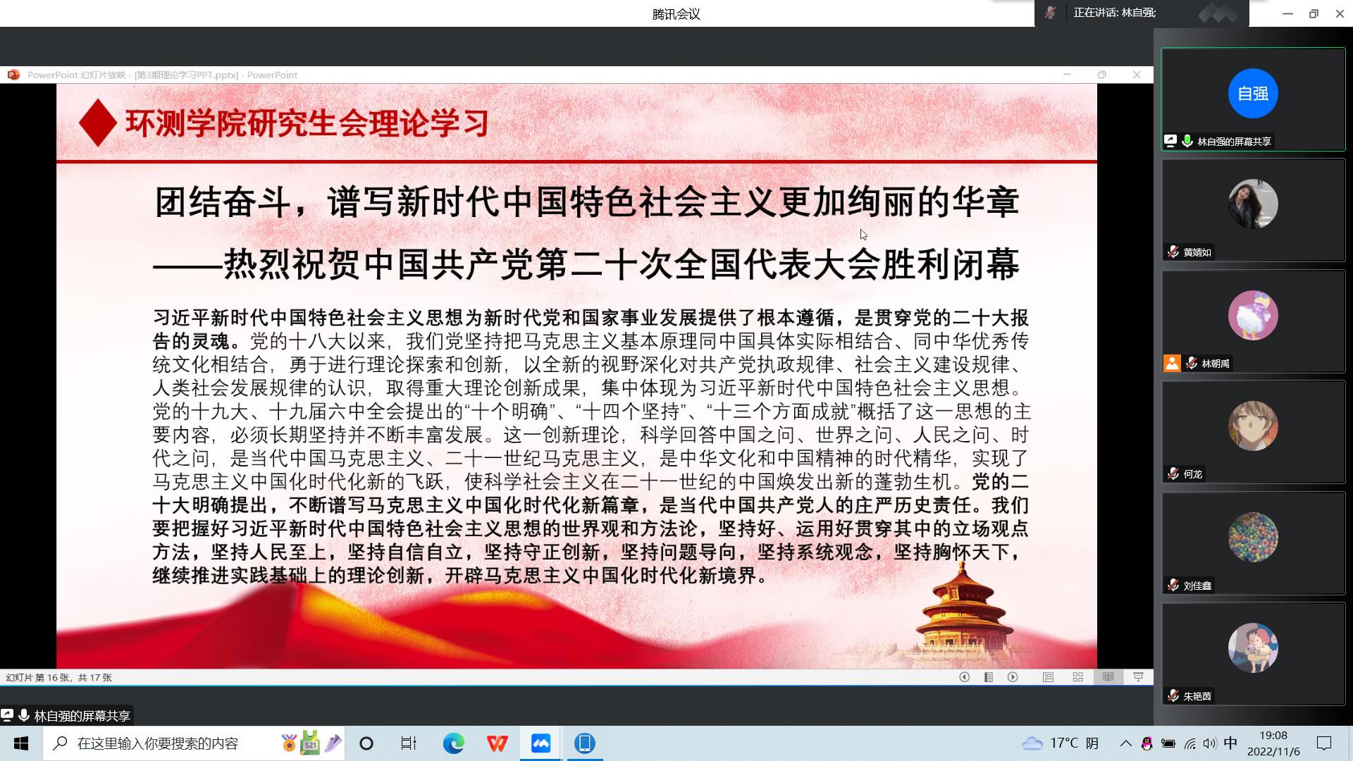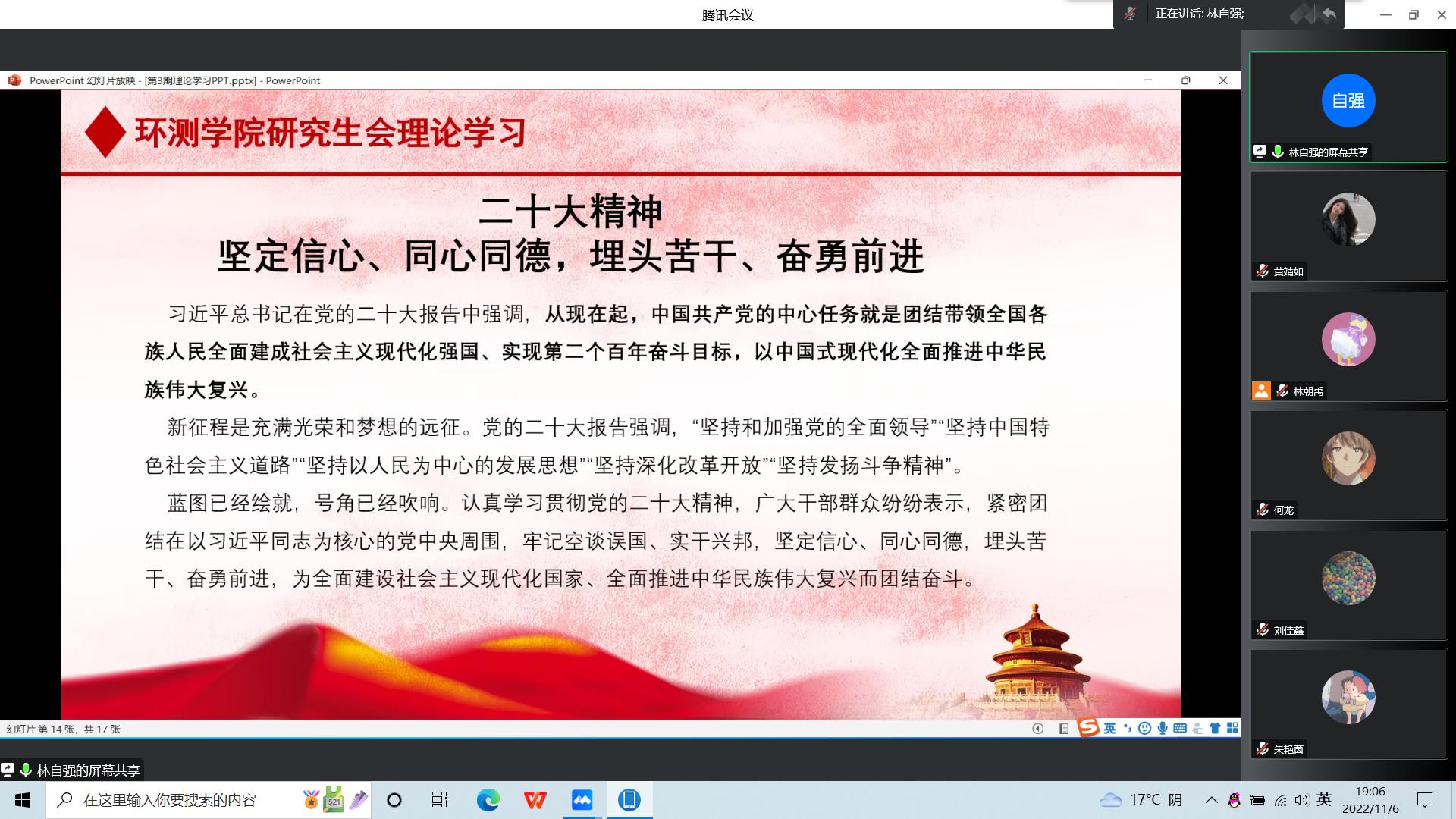 研究生会第三期理论学习于线上召开。此次理论学习的主讲人为林自强。
