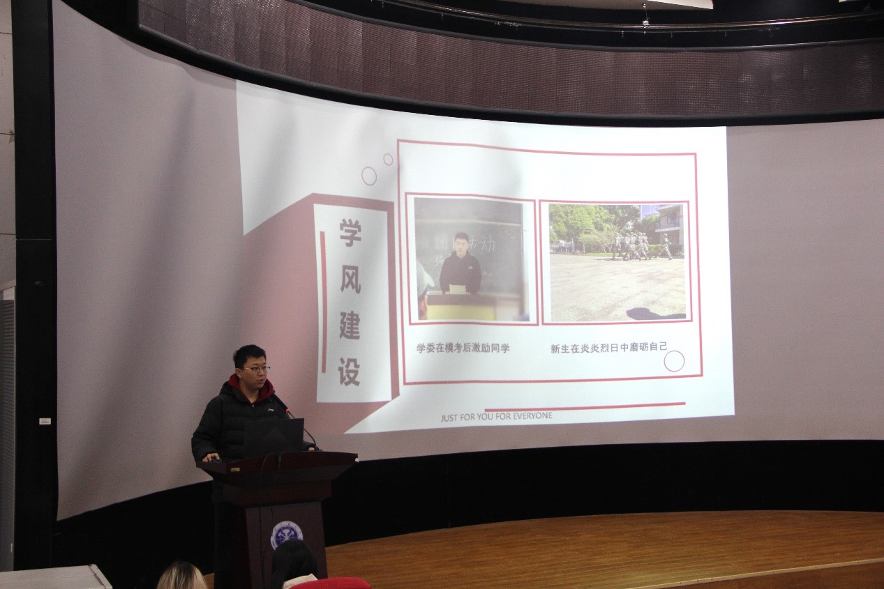 2022级各班级主讲人向大家展示本班风采,又以视频和合唱的形式来展示“一二九”爱国运动纪念活动作品。在班级风采展示环节,有成绩优异的班级展示本班在本学期所得到的成绩、有参与众多活动的班级展示班级及本班同学所获奖状、还有班级关系处理极好的展示出日常的友爱掠影。在纪念活动作品展示环节,有的班级向大家展示了倾注了爱国热情的合唱视频,有的班级展示了用剪辑的方式集合了各个同学的爱国热情,希望祖国越来越好。各个班级的展示形式不一,评委们在展示过后进行了相应的总结,还对每一个参赛班级做出了点评,并希望各个班级都越来越好。