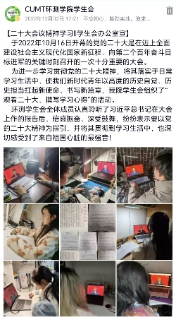 学生会举办“党的二十大精神”培训会,组织同学们线上观看了党的第二十次全国人民代表大会全过程,并写下自己对于党的二十大精神的学习感悟。