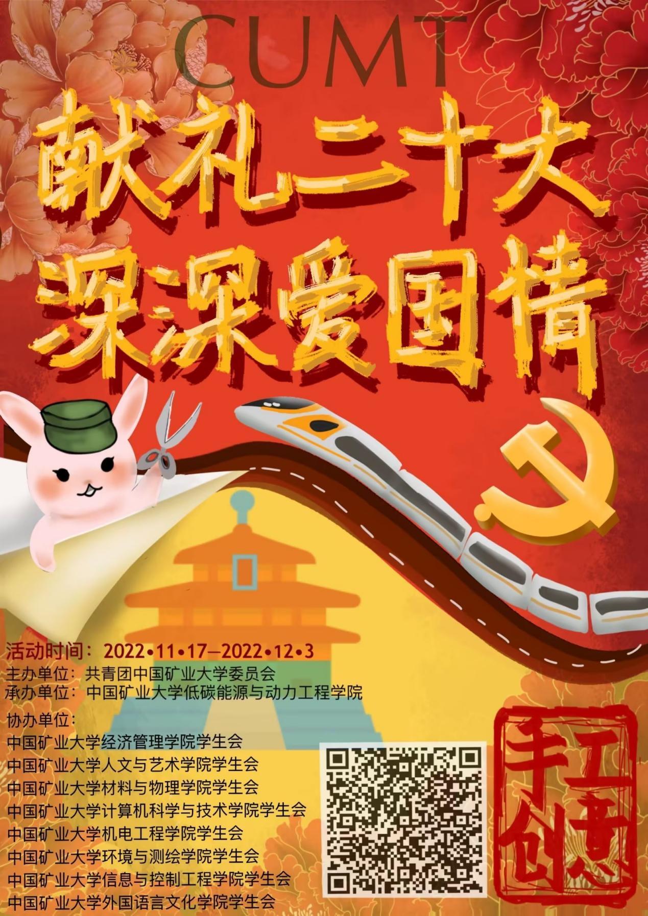 万里乾坤举盛旌,民安国泰享清平,一轮红日东方起,看我中华腾巨龙。2022年10月16日,中国共产党第二十次全国代表大会在北京召开,这次大会是在全党全国各族人民迈上全面建设社会主义现代化国家新征程、向第二个百年奋斗目标进军的关键时刻召开的一次十分重要的大会。为增强同学们的爱国情怀,加强同学们对国家事业的关注以及提高同学们的动手能力,对国家伟大事业表示致敬,2022年11月17日至2022年12月3日,肉漫画