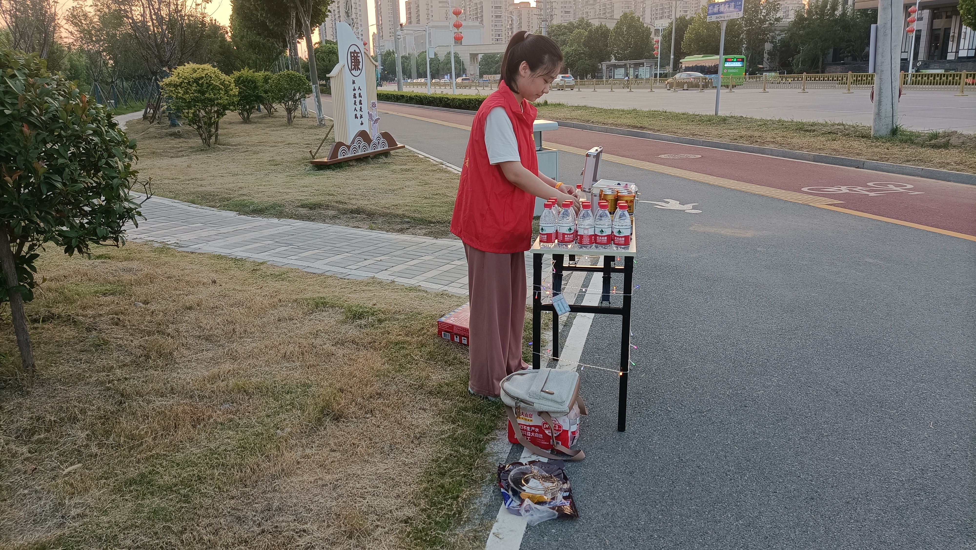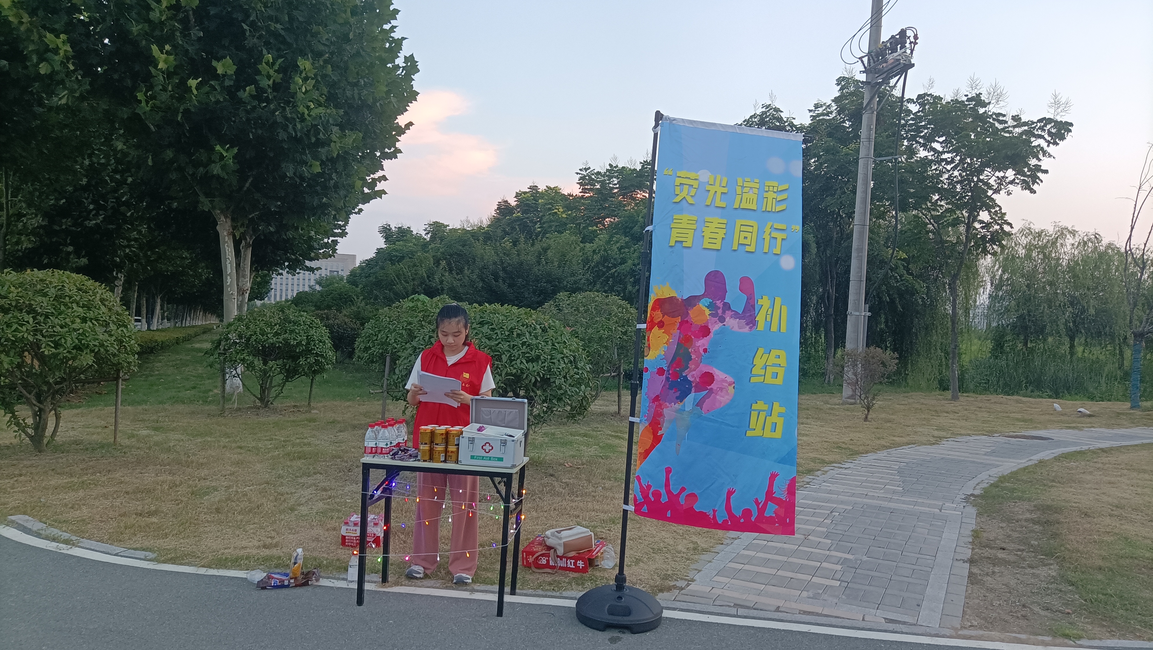 测绘工程专业2020级2班梁玉清同学担任了此次活动的志愿者,其主要工作是为一号补给站经过的参与人员发放补给品。