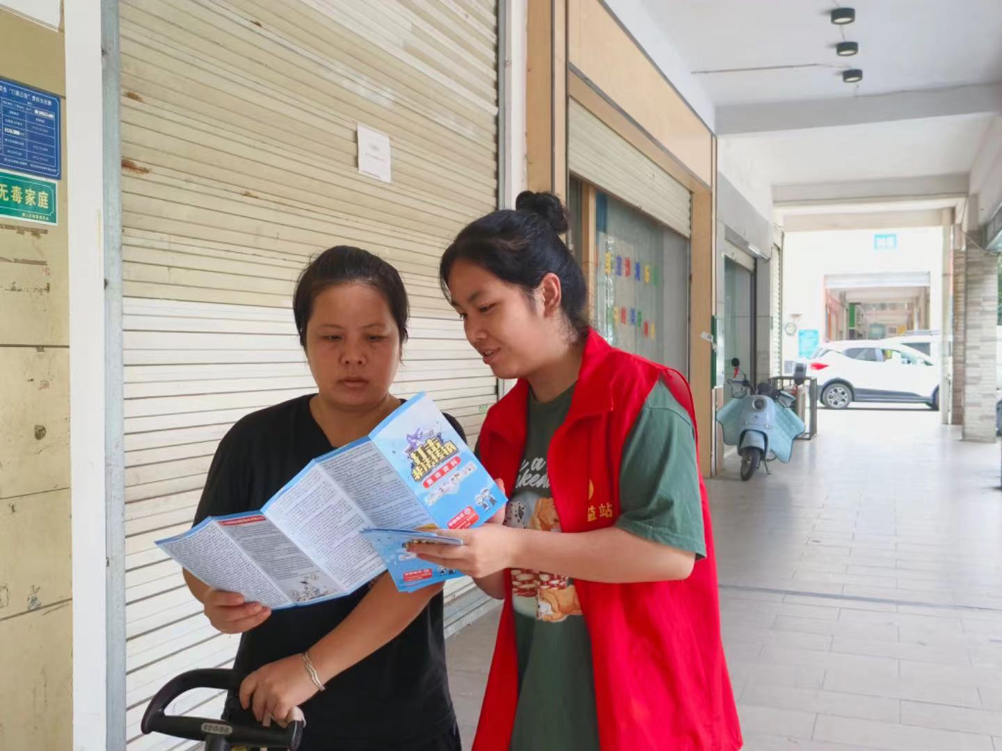 的江欣同学在8月14日于广西柳州市柳江区柳西社区开展了“打击非法传销,关爱居民财产安全”的社会实践活动,深入社区,协助社区工作人员进行宣传活动。