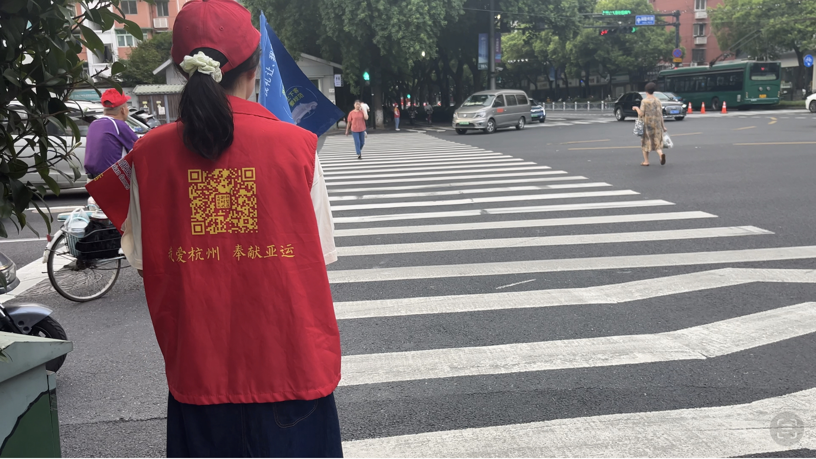 何星如同学于8月2号于浙江省杭州市沈塘桥社区参与“全民亚运”文明劝导活动,志愿活动主要内容是交通引导,维护良好交通秩序。
