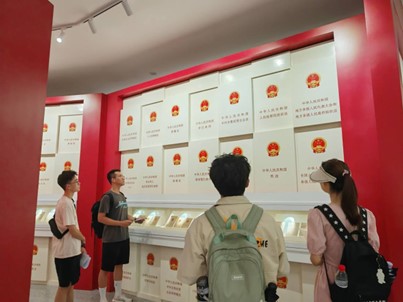 实践团成员在纪念馆内参观建国以来的宪法及法律