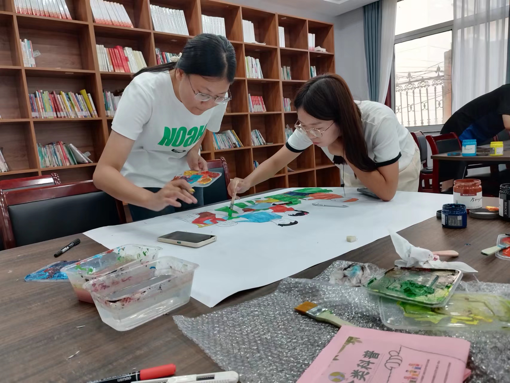 活动期间,8月18日上午,实践团向村民发放了有关垃圾分类的宣传单,并详细讲解了垃圾分类的重要性和分类方法。在接下来的三天里,实践团成员们以画笔为工具,创作了多幅宣传画,分别描绘了生态文明和优良传统等主题。这些宣传画既展现了实践团成员的艺术才能,也传达了他们对生态环保和乡村文明的热爱和尊重。8月21日,实践团将所有宣传画在村中展出,吸引了众多村民前来参观。这些宣传画不仅美化了乡村环境,更通过艺术的方式向村民们传递了环保、文明的重要信息。