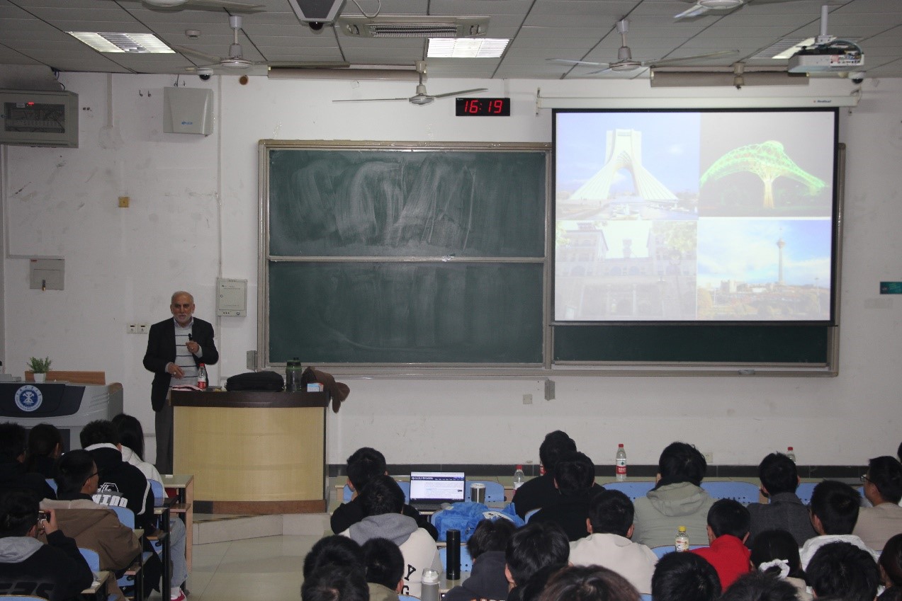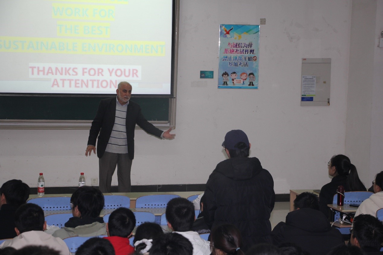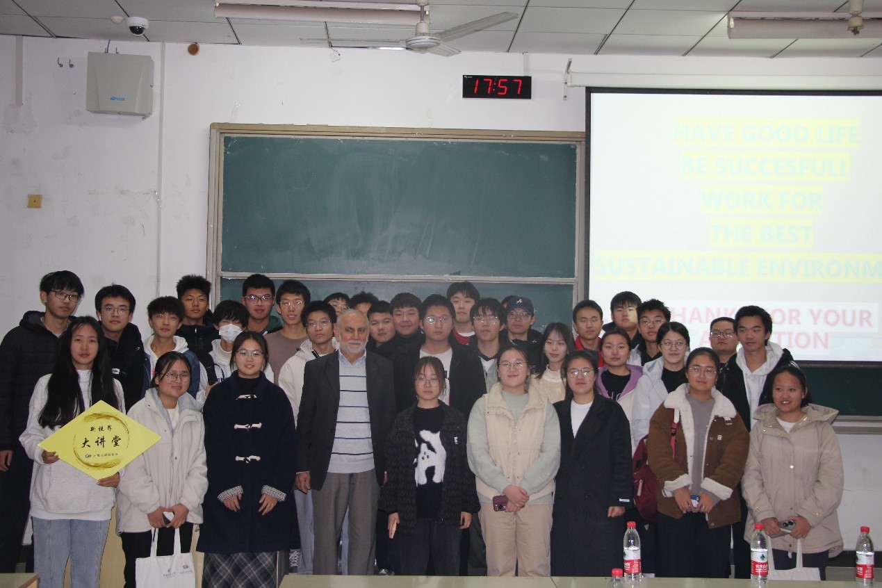 特邀伊朗塔比阿特莫达勒斯大学环境工程系的Hossein Ganjidoust教授,就环境问题的过去、现在、未来发表报告,环境科学系教学副院长周来主持,罗萍副教授与23级全体环境新生参与本次活动。